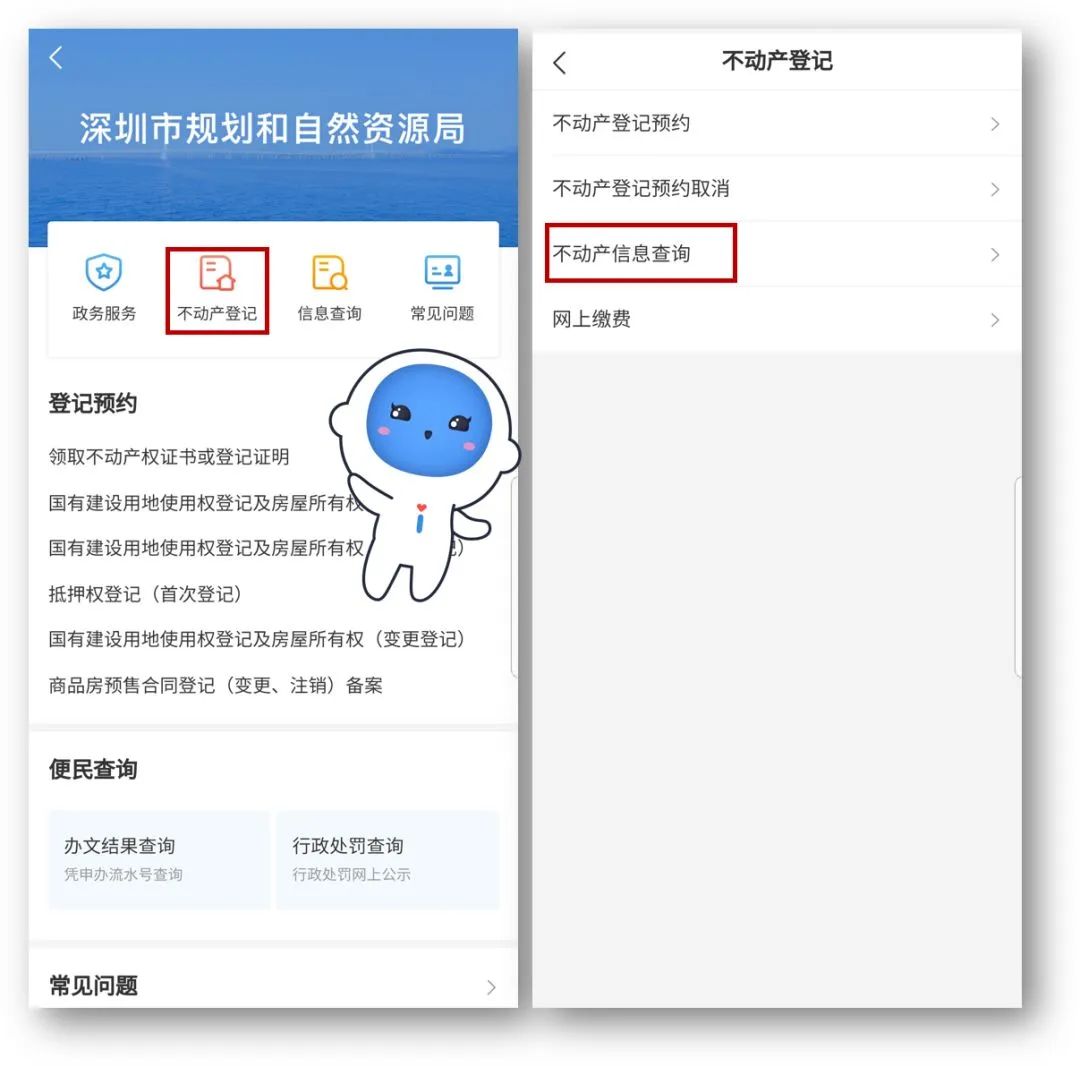 2、点击“不动产登记”-“不动产信息查询”