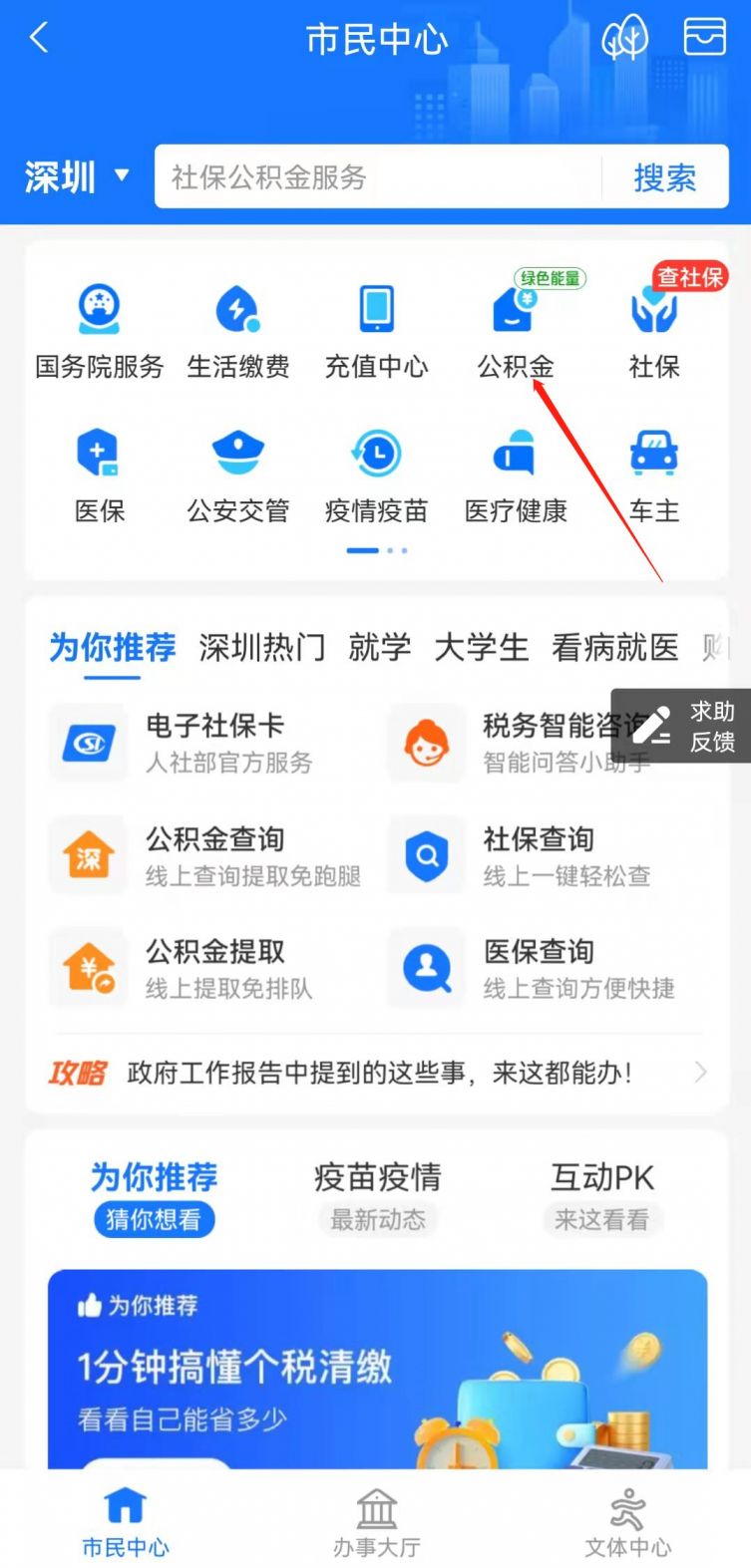 第二步:进入市民中心页面,点击公积金,进入公积金服务页面