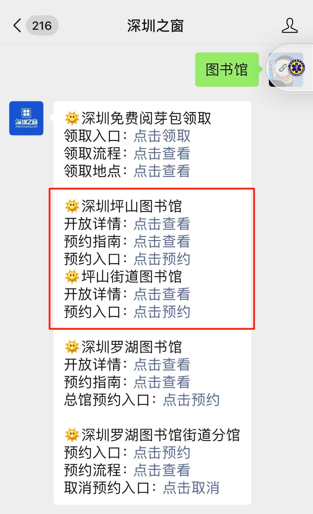 微信搜索或扫描文末二维码,关注【深圳之窗】微信公众号,回复关键词【图书馆】,获取深圳坪山图书馆入馆预约入口及最新消息。回复关键词【国庆】,获取中秋国庆假期深圳各类活动最新消息,不断持续更新中......