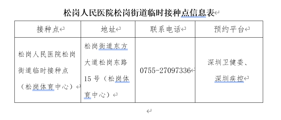 松岗体育中心疫苗接种点咨询热线:0755-27097336