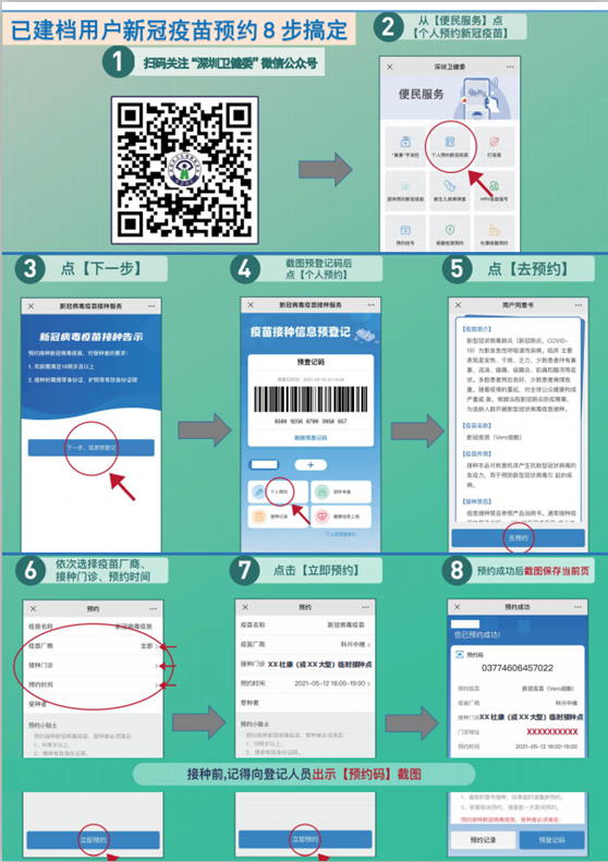 根据市、区最新防疫工作要求,为减少人群无序聚集,降低风险,自5月28日起,街道辖区松岗街道临时接种点(松岗体育中心)实行网上预约。请需要接种的市民朋友们先通过“深圳卫健委”、 “深圳疾控”微信公众号进行预约,并将“预登记码”和“预约单”页面截屏保存到手机相册。成功预约后,带上身份证,按预约时段提前半小时前往所预约的接种点,向现场工作人员出示健康码、配合测量体温,全程戴好口罩,在做好个人防护基础上,注意遵循秩序、保持安全间距,等候入场进行疫苗接种。为了疫情防控安全,没有预约或没到预约时间就过去接种点,现场工作人员将会劝返。