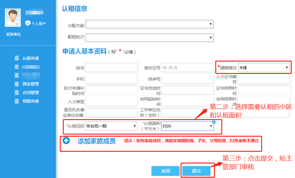 3、点击认租申请,进入认租申请页面,如图: