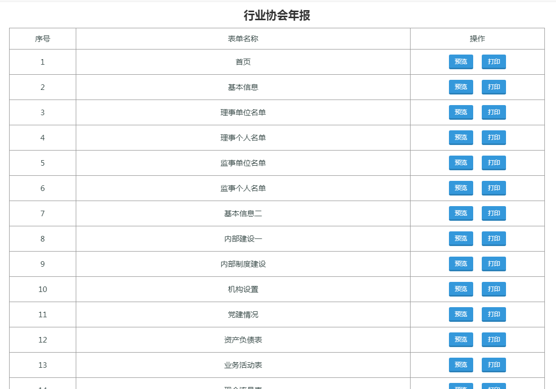 “业务情形”本页无需填写,直接点击右下角“下一步”进入“表单填写”。首先把报告书首页的信息输入完整,填写完整后点击右下角“保存”按键,显示保存成功后点击“打印”按键,把报告书首页打印出来。让本社会组织法人手签并盖上本社会组织公章。