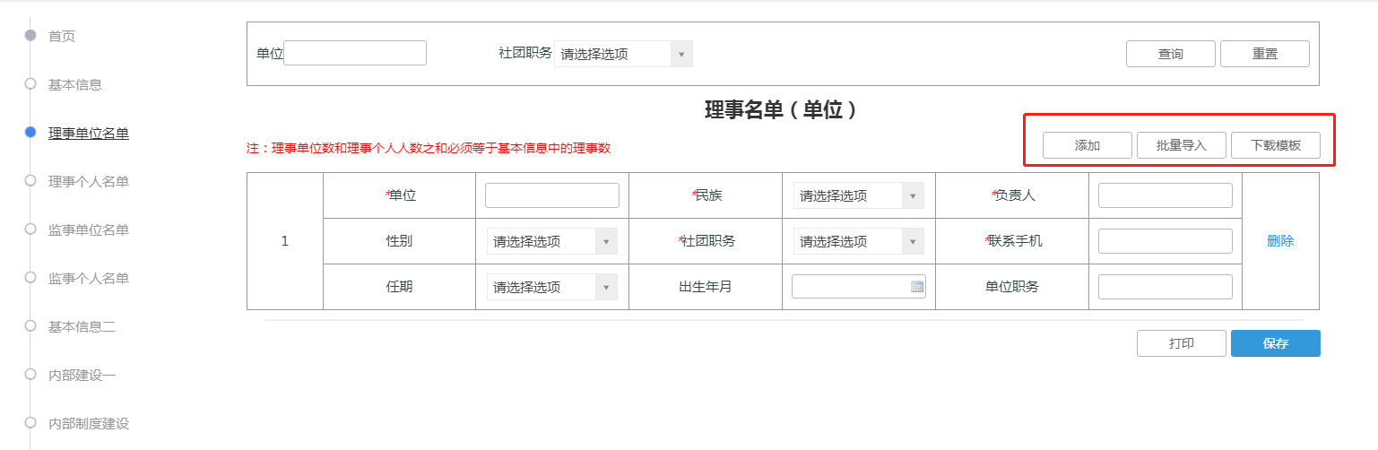 如果理事较多,可点击表格上“下载模板”按键下载批量导入模板。
