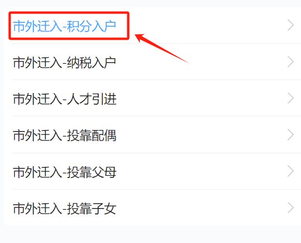 实名认证后点击【市外迁入-积分入户】进入在线申请