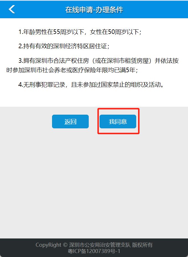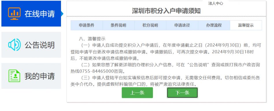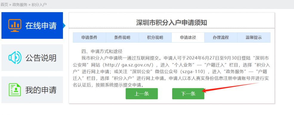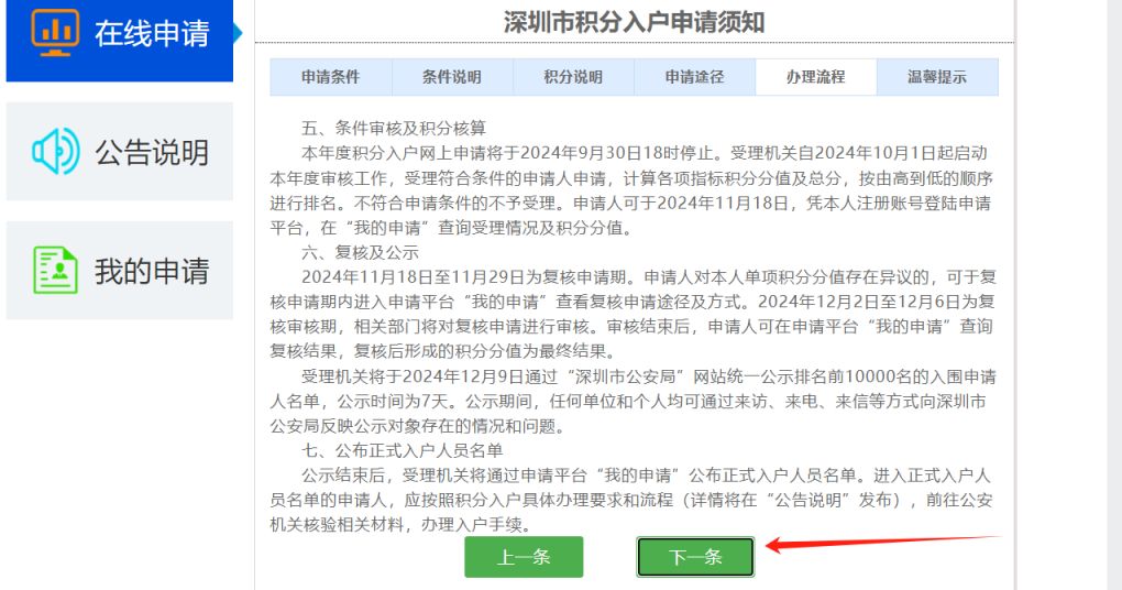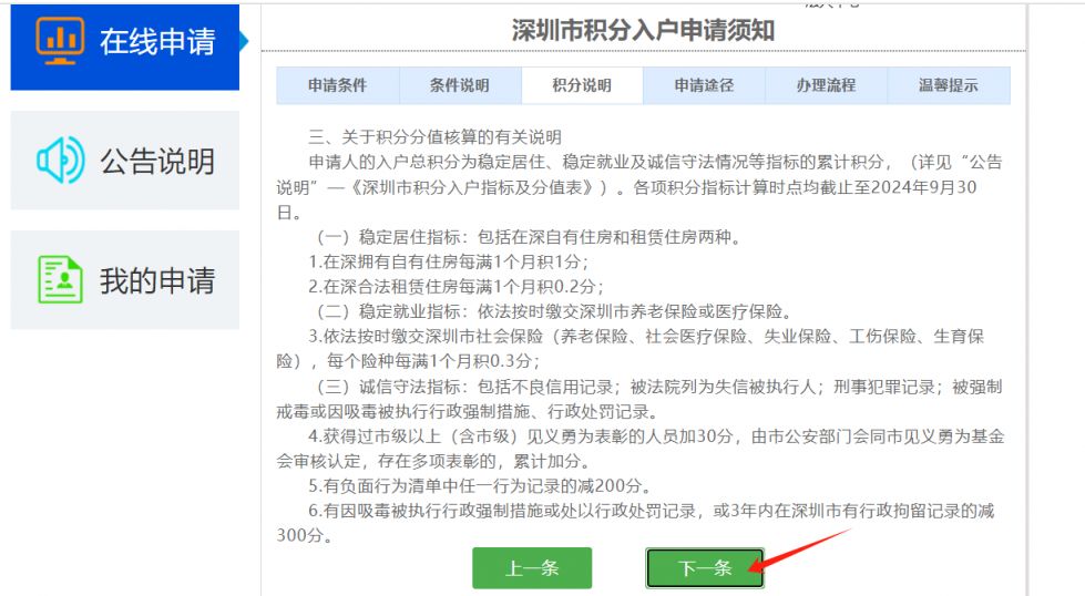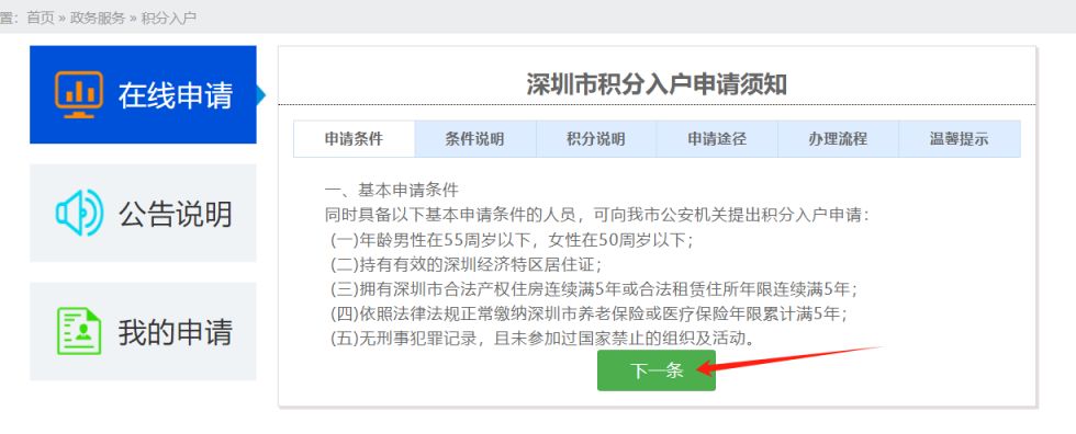 认真查看申请条件、条件说明、积分说明、申请途径、办理流程及温馨提示