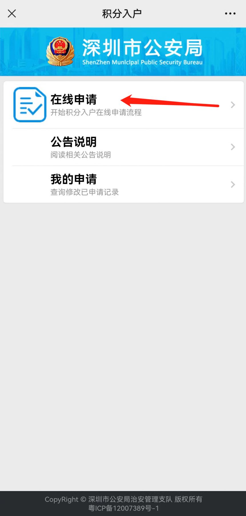 申请人可登录“深圳市公安局”网站(http://ga.sz.gov.cn/),进入“个人业务”,选择“市外迁入-积分入户”进行网上申请;