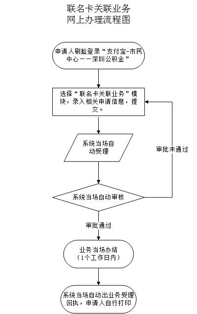 1、申请:申请人登录“粤省事”微信小程序、“i深圳”APP、支付宝市民中心或者住房公积金银行自助终端(工、建)选择“联名卡关联”,填报相关申请信息后提交。