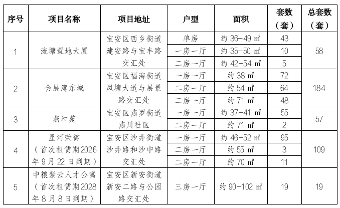 详细信息:2025年深圳宝安区流塘置地大厦等保障性租赁住房配租有关事项