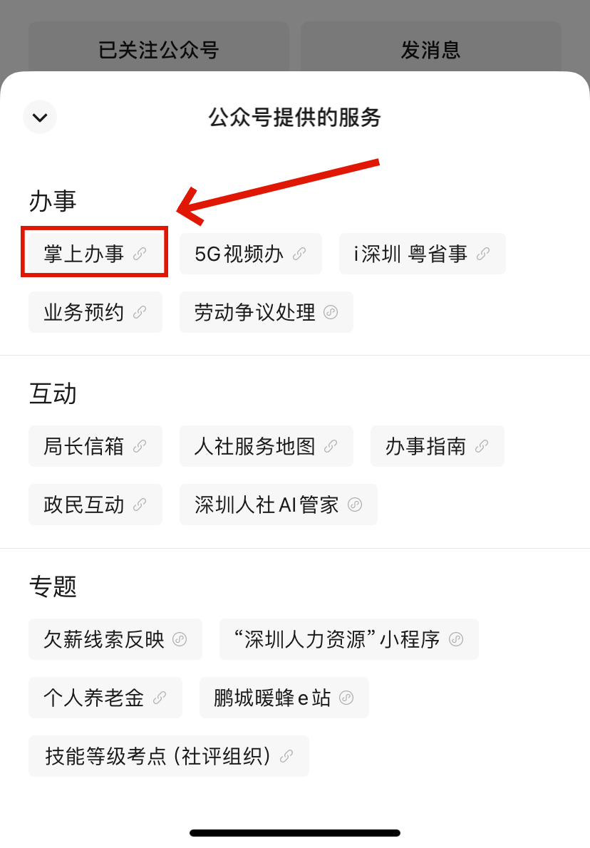 以“深圳人社”微信公众号为例: