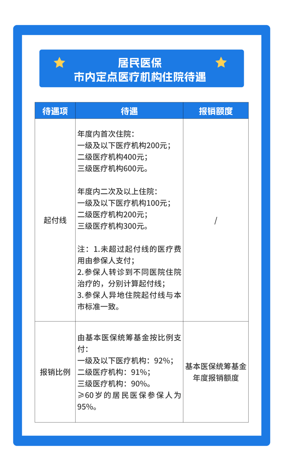 参保人在市内定点医疗机构住院发生的基本医疗费用,由统筹基金按照下列规定支付: