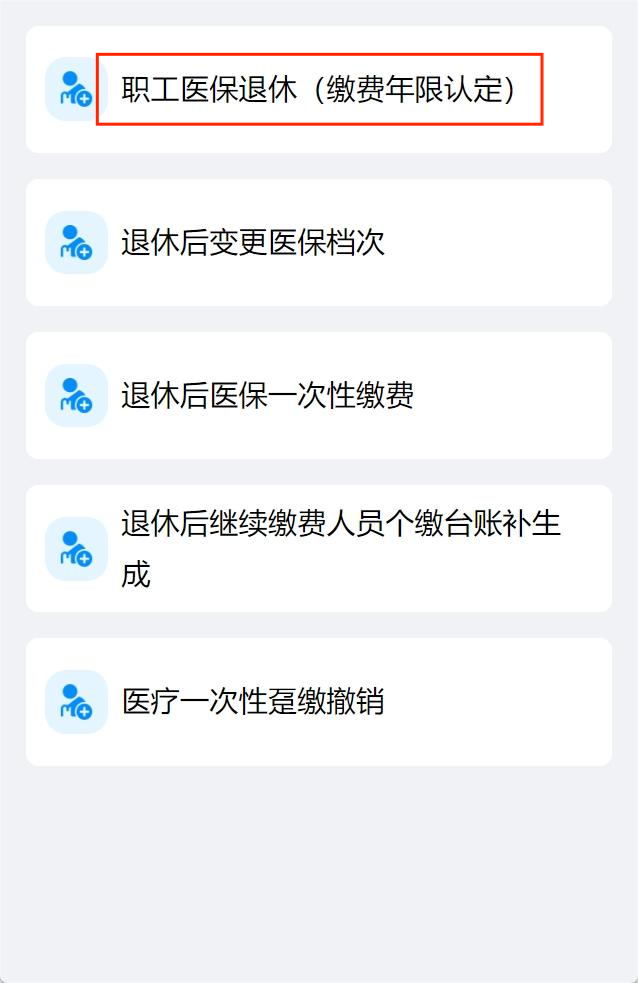 进入“深圳医保”微信公众号,点击“医保网办”→“掌上办事”,登录后选择“我要办事”→“医保退休”,进入→“职工医保退休(缴费年限认定)”→立即办理→选择“享受医疗档次”和“退休年月”→确认无误提交→查看审核结果,结束办理。