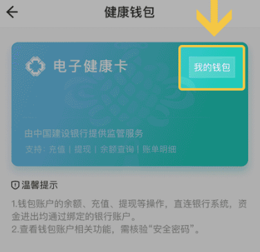 3、成功开通后,再次进入“健康钱包"查看我的健康账户,需设置并核验安全密码。