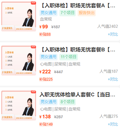 因网站频繁更新体检套餐及其价格优惠信息,实际价格请参照套餐详情页面上的最终展示。