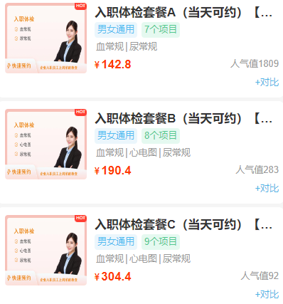 套餐个数:3个体检套餐可供选择
