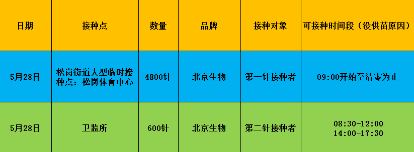 (2021年5月28日)松岗街道新冠疫苗供应情况: